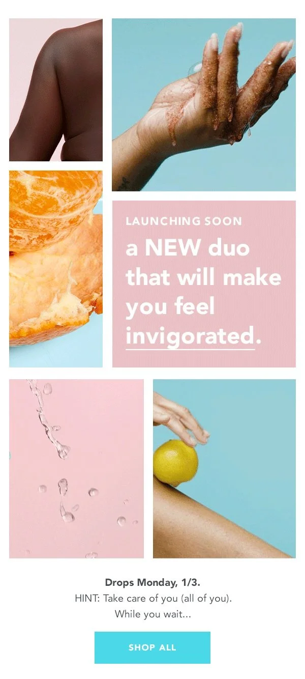 Objective/Background: For TULA Skincare’s first-ever body care product launch, I conducted voice of customer research and competitive analysis to highlight the collection’s value proposition. From that analysis, I created headlines, body copy, and subject lines aligned with the creative brief’s marketing objectives. I emphasized the performance of the products and quality skincare ingredients while educating customers on how to introduce the collection into their routines. Throughout the email series, I incorporated sensory language to align with the campaign’s creative direction.